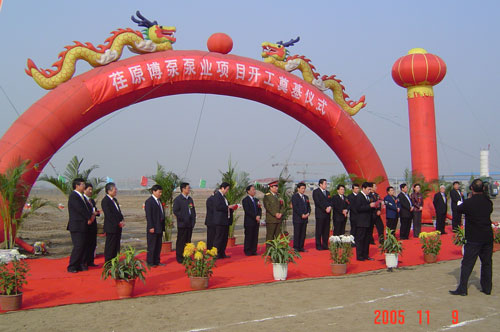新聞中心    2005年11月9日,荏原博泵有限公司開工奠基儀式在淄博高新技術開發區隆重舉行。這標志著荏原博泵泵業有限公司的建設工作已經全面啟動,預示著荏原博泵泵業有限公司將穩健地邁上蓬勃發展的道路。