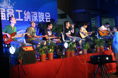18:30分,晚會節(jié)目正式開始,首先在晨曦樂隊激情飛揚的搖滾歌曲聲中拉開了晚會的序幕。晚會節(jié)目有獨唱、小合唱、舞蹈等等,演員們的精彩表演,博得了員工們陣陣掌聲和喝彩。特別是生產(chǎn)部門女職工排練的舞蹈,動感十足,展示了女員工的多姿多彩的精神風貌。常務副總經(jīng)理王正軍的一曲豪邁的《紅旗飄飄》,抒發(fā)了荏原博泵員工的愛國情懷;北京事務所的王信東部長帶來了抒情歌曲《別問》;王虹權(quán)、袁磊、趙喜鵬、周新菊、肖旭、竇群、蔣祺、張雷雷、徐道義、董旭光等員工先后表演了自己準備的節(jié)目;職工子女表演的拉丁舞更是把晚會的氣氛推向高潮。