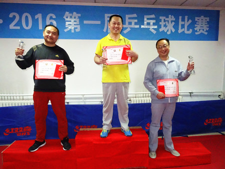 經過緊張、激烈的角逐,獲得男子團體比賽的冠軍隊是:機加工二隊;亞軍:質量采購隊;季軍:管理隊。獲得男子單打前六名的隊員是:冠軍:李金勇;亞軍:張鑫;季軍:劉增忠;第四名:丁業旋;第五名:趙汝慶;第六名:聶紅兵。